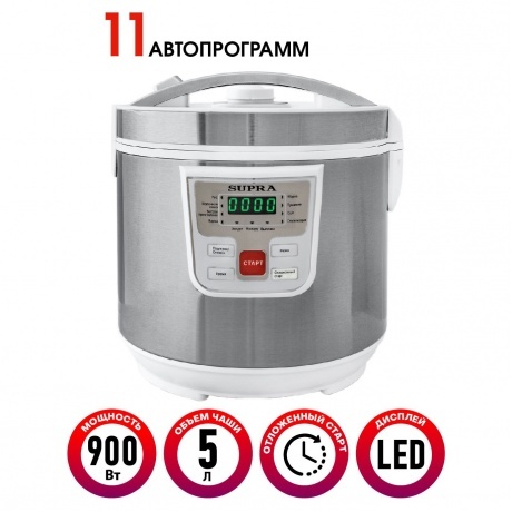 Описание товара Мультиварка Supra MCS-4115 5л 900Вт серебристый/белый