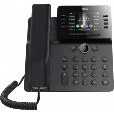 IP-телефон Fanvil V64, современный, эргономичный дизайн, цветной дисплей и клавиши BLF. IP-телефон Fanvil V64 отличается изысканным, современным и эргономичным дизайном с большим цветным дисплеем с программируемыми функциональными клавишами сбоку от дисплея и программируемой этикеткой на ЖК-дисплее. Встроенное соединение Bluetooth и Wi-Fi.