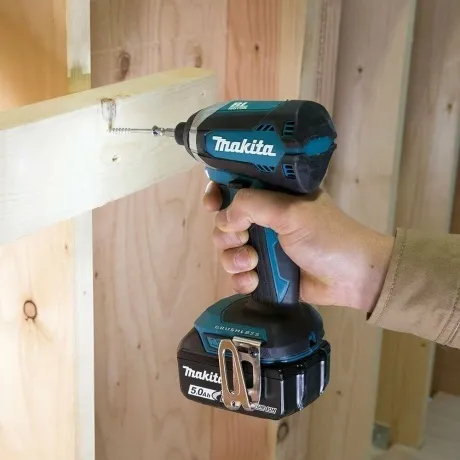 Шуруповерт Makita DTD153Z Без ЗУ и АКБ с прочным корпусом небольшой длины укомплектован стабильным в работе бесщеточным двигателем с внушительным рабочим ресурсом. Инструмент привлекает продуманной эргономикой рукояти, снабженной противоскользящими резиновыми накладками, и удобным расположением клавиш управления. Например, для включения реверса вам не придется снимать руку с рукоятки. Поддерживая работу в ударном режиме, данная модель развивает крутящий момент до 170 Нм и не оставляет ни единого шанса тугому крепежу. Направленный в рабочую зону светодиод шуруповерта Makita DTD153Z упрощает выполнение как крепежных, так и сверлильных операций при недостаточном освещении. Инструмент снабжен патроном под биты, допускающим подключение оснастки с шестигранным хвостовиком шириной 6.35 мм. Он поставляется без совместимой литий-ионной АКБ и зарядного адаптера для нее.