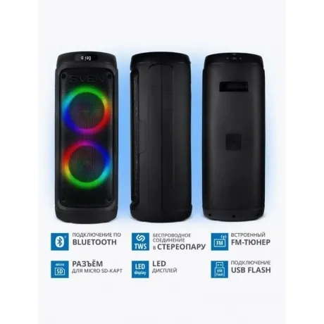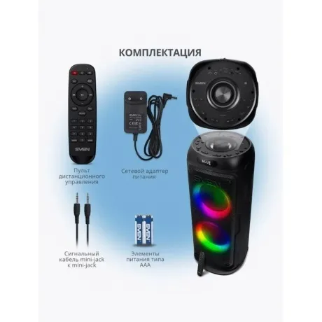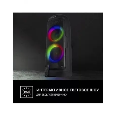 Портативная акустика SVEN PS-770 непременно порадует качественным звучанием, за которое отвечают крупные динамики: диаметр высокочастотного — 38 мм, а басового — целых 145 мм. Вместе они работают в широком частотном диапазоне — от 40 Гц до 22 кГц и способны выдать по-настоящему мощный бас в танцевальных композициях и яркие солирующие партии в популярной музыке. И все это при общей мощности в потрясающие 100 Вт, которой хватит не только для домашнего праздника, но и для большой вечеринки на свежем воздухе. Для мобильной колонки это действительно солидная цифра. Акустика оснащена ярким LED-дисплеем и встроенным эквалайзером, в комплекте даже имеется пульт дистанционного управления… С первого взгляда понятно, что SVEN PS-770 — не карманное устройство, а серьезный мобильный музыкальный центр. Ее размеры — 250?260?660 мм, а масса — чуть более 5 кг. Но все же перенести устройство с места на место сможет даже ребенок, взять ее с собой на пикник или выезд на дачу можно без лишних усилий. Для удобства переноски предусмотрена удобная ручка, а прочный пластиковый корпус готов выдержать все тяготы постоянной транспортировки.