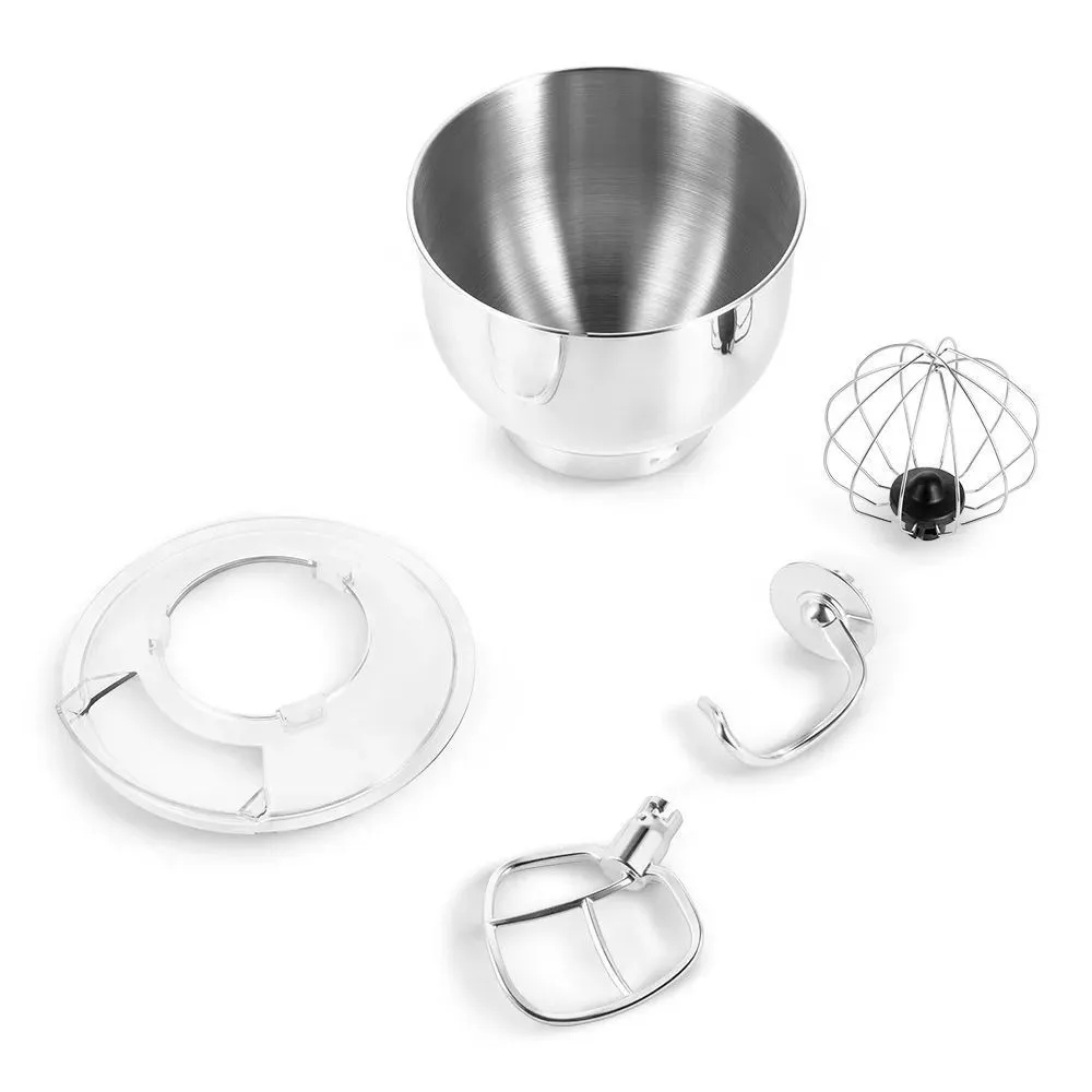 Планетарный миксер КТ-3436 поможет вам смешать ингредиенты для любого блюда, взбить яичный белок или сливки, приготовить картофельное пюре, мусс, крем, соус, замесить жидкое тесто для блинов или крутое тесто для пельменей и пирогов. Во время работы прибора скорость вращения регулируется. Кнопкой скорость также можно настроить скорость работы, она отобразится на индикаторе. У прибора 11 скоростей и 4 режима работы: ручной режим, замешивание, взбивание, смешивание. В комплекте идут венчик для взбивания, крюк для замеса крутого теста, насадка для смешивания продуктов и приготовления пюре. Форма насадок и чаши подобраны так, что почти при любом количестве продуктов насадка перемешает их качественно и быстро. Кнопка «Время» позволяет настроить время работы миксера. Для каждого режима можно настроить время от 1 минуты до 99 минут 59 секунд с шагом 1 минута. При нажатии на кнопку «Время» таймер на панели управления начинает мигать. Планетарный миксер КТ-3436 укомплектован защитной крышкой с загрузочным отверстием, через которое можно добавлять ингредиенты прямо во время работы, не отвлекаясь на выключение прибора. Благодаря крышке ваша кухня останется чистой и аккуратной. Чаша миксера выполнена из нержавеющей стали и имеет ёмкость 5,5 литров, в ней можно смешивать даже горячее. В комплекте идут насадки для взбивания, смешивания и замеса крутого теста, а также защитный кожух, который защищает шпиндель от налипания.