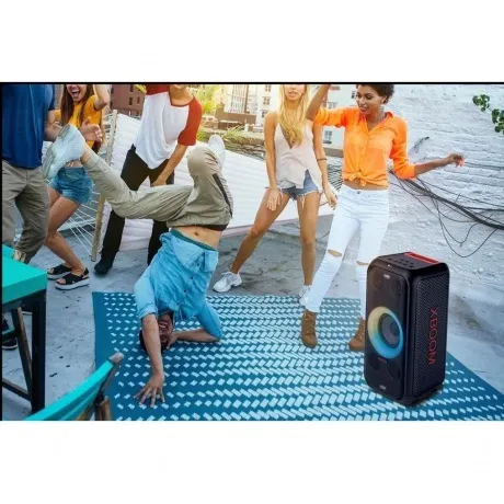 Домашняя аудиосистема LG XBOOM XL5S мощностью 200 Вт выполнена в виде большой колонки с USB-проигрывателем. Акустика оборудована большим 6.5-дюймовым НЧ-динамиком и двумя купольными 2.5-дюймовых твиттерами для воспроизведения высоких частот. Благодаря этому колонка воспроизводит мощный сбалансированный звук, заполняя большое пространство. При минимальной громкости вы сможете ощутить глубину звучания басов. НЧ-динамик выделен кольцевой подсветкой, которая украшает корпус.Колонка LG XBOOM XL5S использует Bluetooth-канал для соединения с мобильными устройствами. С установкой приложения LG XBOOM становятся доступными любые настройки звука и эффектов подсветки. Для гитары и микрофона на корпусе аудиосистемы предусмотрены входы, что наряду с функцией «Караоке» делает колонку незаменимой для веселых вечеринок. Встроенный аккумулятор позволяет акустике звучать в течение 12 часов непрерывно при условии отключения подсветки и установки 50% громкости.