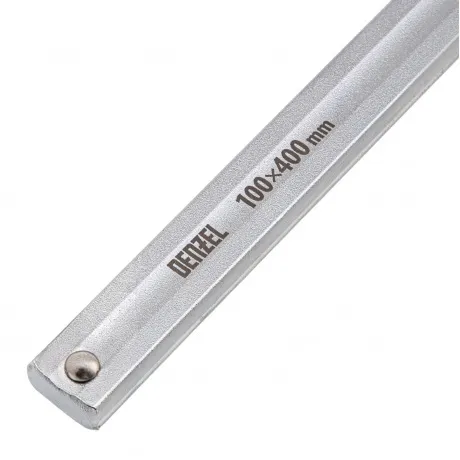 Кованая F-образная струбцина Denzel 20471 с глубиной зажима 100 мм, усиленная, предназначена для фиксации деталей шириной до 400 мм и материалов при проведении слесарных, столярных и сварочных работ. Тавровый профиль обеспечивает устойчивость конструкции к изгибу, что позволяет фиксировать детали со значительным усилием. Струбцина подходит для профессионального применения. Корпус изготовлен из конструкционной стали 45 методом ковки и закален для большей прочности до твердости 38-42 HRC. Винт с трапециевидной резьбой передает усилие без закусываний и заеданий. Хромированное покрытие надежно защищает струбцину от коррозии.