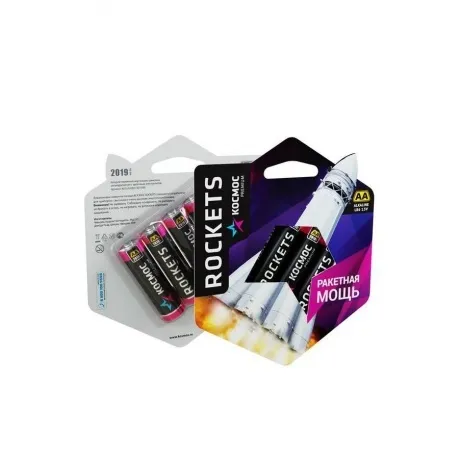 Мощные щелочные (алкалиновые) батарейки Космос ROCKETS – в упаковке 4 шт. Созданы специально для емких устройств - например моторных игрушек. Типоразмер батареек АА также называют «пальчиковые» (на приборах-потребителях может обозначаться как LR6, R6, UM3). Работают как дорогие батарейки – по результатам независимых тестов показали результат сопоставимый с ТОП-3 известных батареек. Продолжительный срок годности - могут храниться до 7 лет, не потеряв при этом значительной емкости энергии.