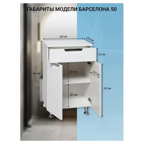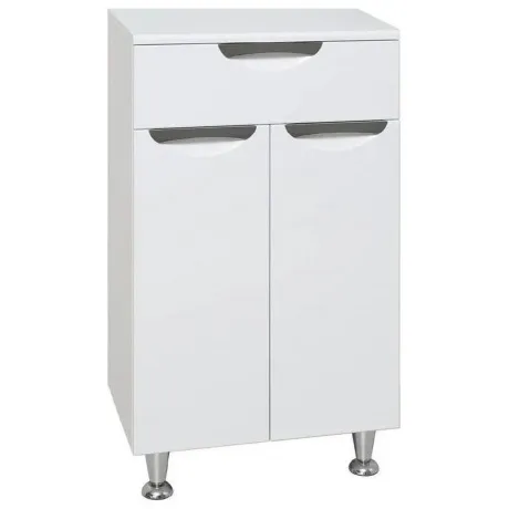 Тумба в ванную (полупенал) с одним выдвижным ящиком и двумя распашными дверками, за которыми одна встроенная полка. Петли со встроенным доводчиком, ручки врезные