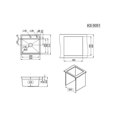 Описание товара Кухонная мойка GRANULA Kitchen Space (5051, СТАЛЬ МАТОВАЯ)