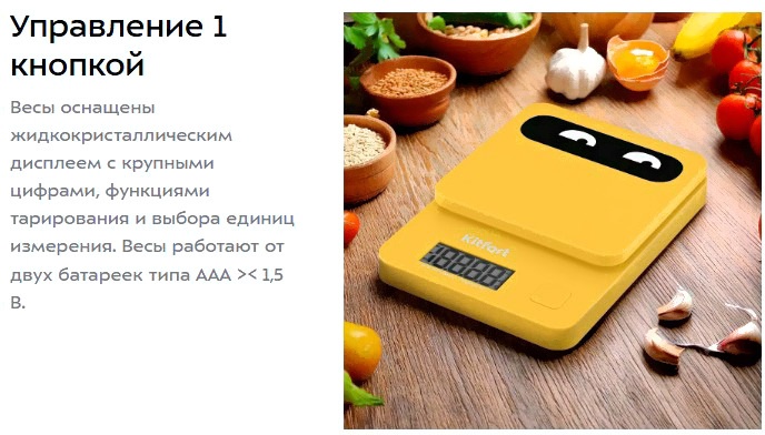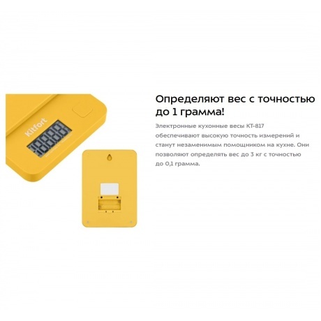 Описание товара Кухонные весы Kitfort КТ-817-3 желтый