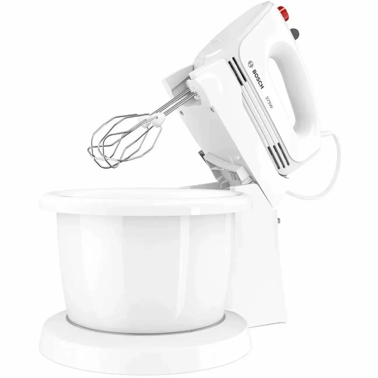 Стационарный миксер Bosch MQWPL2000 белого цвета оснащен 3-литровой чашей из пластика. В модели реализованы 4 скорости и турборежим. Максимальная мощность миксера – 375 Вт.