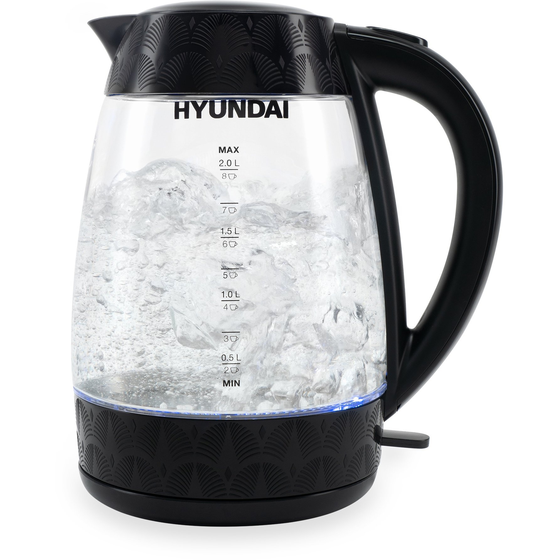 С чайником Hyundai HYK-G4505 вода нагреется до температуры кипятка за считанные минуты. Стенки прибора выполнены из стекла, которое отлично поддерживает кипяток горячим в течение долгого времени. Пластик, из которого выполнена подставка и многие детали устройства, не влияет на вкус воды, а также прочен и надёжен. В дно чайника встроена яркая подсветка, которая выполняет декоративные функции и выступает в качестве индикатора работы прибора. Интегрированные лампы освещают жидкость на 360 градусов. На бок Hyundai HYK-G4505 также нанесены отметки, по которым можно судить о заполненности ёмкости прибора. Максимальный объём жидкости, который помещается в данную модель, составляет 2 л. Предусмотренная мощность 2200 Вт позволяет быстро нагреть их до состояния кипятка. В конце каждого цикла нагрева Hyundai HYK-G4505 отключается автоматически. Крышка устройства открывается по щелчку и надежно закрывается на защёлку. Hyundai HYK-G4505 оснащён защитой от включения без воды, что значительно продлевает ресурс нагревательного элемента. Он эргономично скрыт в поставке для повышения безопасности использования чайника. Минималистичный дизайн устройства позволит ему вписаться в любой интерьер.