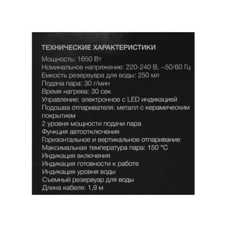Hyundai H-HS02890 – это миниатюрный отпариватель, выполненный в эргономичном форм-факторе со съёмным баком для жидкости. Несмотря на свои скромные габариты прибор использует мощность 1650 Ватт, что позволяет ему нагреваться до рабочей температуры уже через 30 секунд после включения в сеть. Устройство непрерывно подаёт пар в двух разных режимах интенсивности после нажатия на кнопку включения. Максимальная производительность отпаривателя составляет 30 грамм в минуту. При этом Hyundai H-HS02890 одинаково эффективно выполняет свои функции и в горизонтальном, и в вертикальном положениях. Съёмный резервуар для воды данной модели вмещает до 250 мл воды. Её уровень отслеживается с помощью специальной индикации, а когда жидкость заканчивается, Hyundai H-HS02890 автоматически выключается для защиты от перегрева. Воду можно доливать в бак прямо во время работы, не выключая питание, – это очень удобно, особенно когда нужно отпарить сразу много одежды в кратчайшие сроки. Резервуар расположен прямо под рукояткой, так что его удобно снимать при надобности.