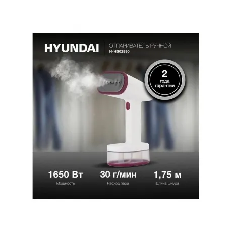 • Отпариватель ручной Hyundai H-HS02890 1650Вт белый/вишневый - фото 1