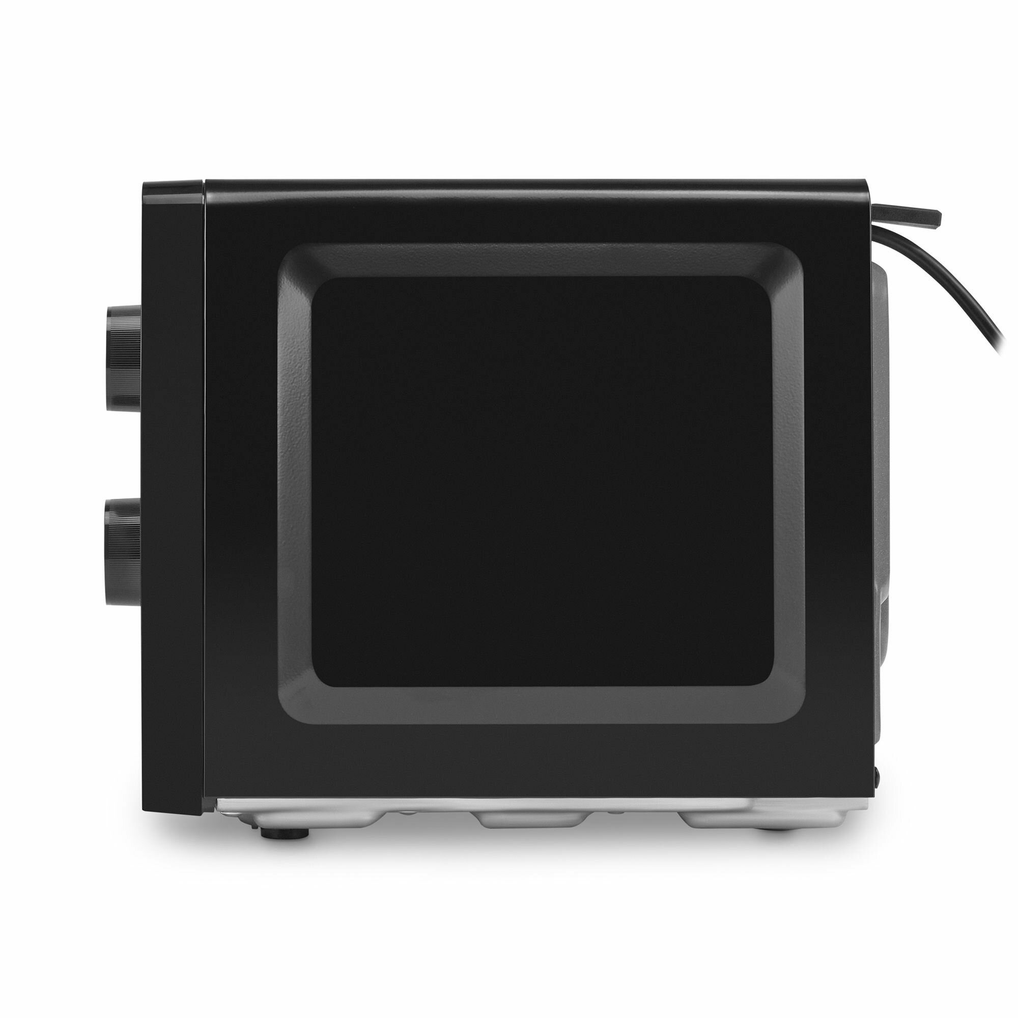 HYUNDAI HYM-M2010 – это вариативная микроволновая печь, выполненная в минималистичном чёрном дизайне. Девайс вмещает до 20 л объёма – этого места достаточно даже для подогрева большого блюда. Диаметр поворотного стола – 245 мм – также этому способствует. Данная модель обладает мощностью 700 Вт, что позволяет ей в считанные минуты справиться с разогревом большинства разновидностей пищи. При этом температурный режим устройства можно легко подстроить под конкретную еду. Есть даже программа автоматической разморозки. Для изменения режимов в верхней части передней панели прибора расположен поворотный регулятор. Под ним находится аналогичная деталь, но отвечающая за установку таймера. Её предельное значение – 35 минут. Ниже предусмотрена кнопка для открытия дверцы. Полностью механическое управление HYUNDAI HYM-M2010 организовано просто и интуитивно, однако в комплекте с устройством поставляется подробная инструкция на русском языке. Она поможет решить любые возникающие вопросы, если таковые будут. Габаритные размеры и лаконичное чёрное исполнения позволят микроволновой печи вписаться в любой интерьер.
