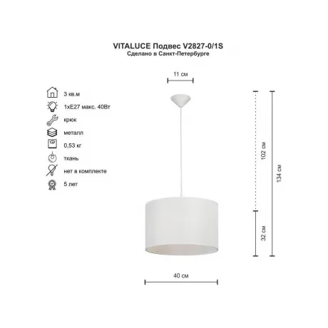 Люстра V2827-0/1S, 1xE27 макс. 40Вт в Тольятти