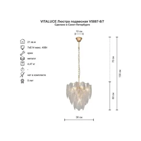 люстра vitaluce v5887-8/7 станет изысканным украшением вашего интерьера с семью e14 цоколами.