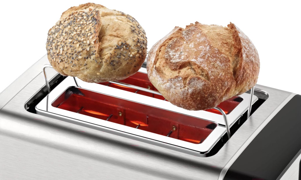 Для тех, кто любит теплые булочки на завтрак, предусмотрена решетка для подогрева, которая нежно разогреет ваши любимые изделия. При необходимости процесс поджаривания можно остановить в любой момент с помощью кнопки отмены.