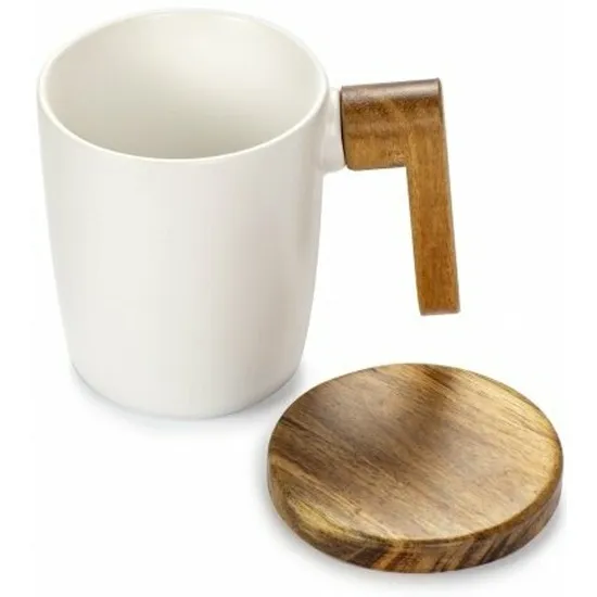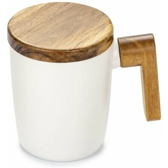 В комплекте с кружкой идет деревянная крышка, что делает ее еще более практичной и удобной в использовании.