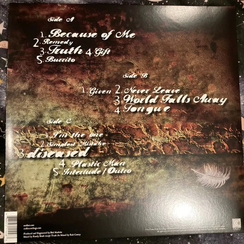 Because Of Me, Remedy, Truth, The Gift, Burrito, Given, Never Leave, World Falls Away, Tongue, I’m the One, Simplest Mistake, Diseased, Plastic Man, Interlude/Outro