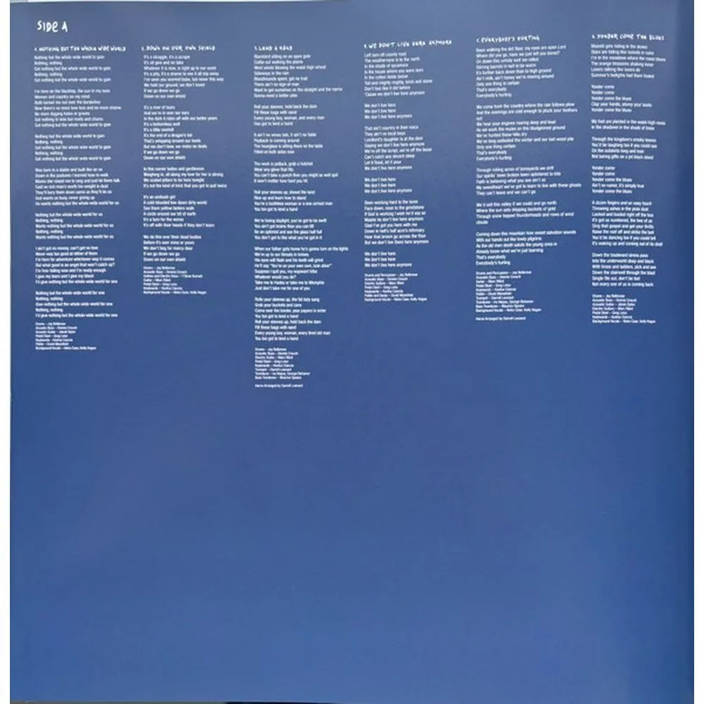 Nothing But The Whole Wide World, Down On Our Own Shield, Lend A Hand, We Don't Live Here Anymore, Everybody's Hurting, Yonder Comes The Blues, Holy Rollers For Love, Truth For A Truth, They've Trapped Us Boys, Smile When You Call Me That, Standing Eight Count