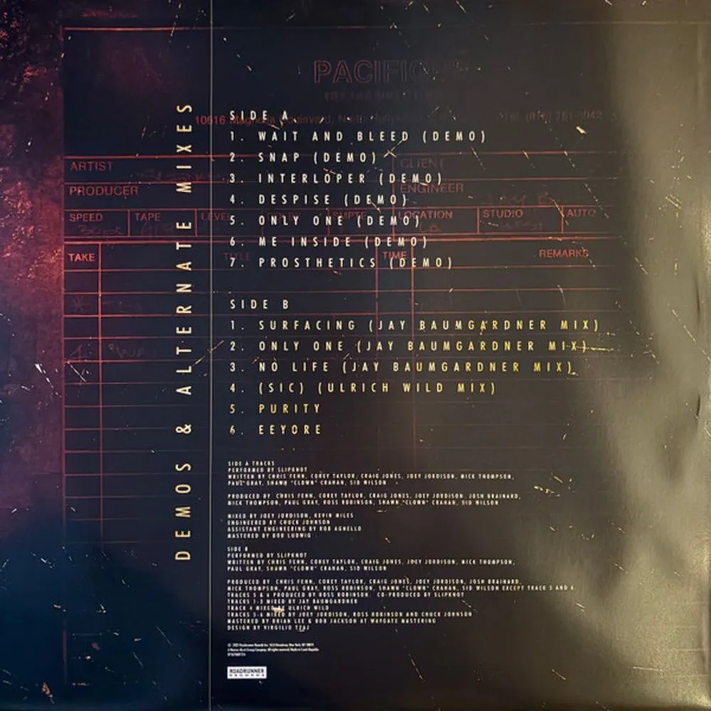 2LP - подарочное издание к 25-летию, красно-черный микс цветного винила, включающий оригинальный альбом, спродюсированный Россом Робинсоном, а также редкие и неизданные демо-записи и альтернативные миксы (переиздание 2025 года). Группа SLIPKNOT анонсировала SLIPKNOT (25th ANNIVERSARY EDITION) — переиздание делюкс-альбома, посвященное выходу их одноименного легендарного дебютного альбома, который дал группе толчок к успеху в 1999 году. Релиз состоится 5 сентября на лейбле ROADRUNNER RECORDS и увековечит творческий процесс группы в то время, когда «Айовская девятка» превратилась из молодой метал-группы, недавно подписавшей контракт, в неожиданную и неудержимую культурную силу, которая изменила представление о тяжелой музыке для нового поколения. Альбом включает в себя оригинальный альбом, спродюсированный Россом Робинсоном, а также редкие и неизданные демо-записи и альтернативные миксы. Он выйдет на двух CD или двухLP Red & Black Mix с совершенно новой обложкой.
