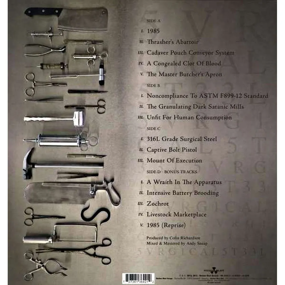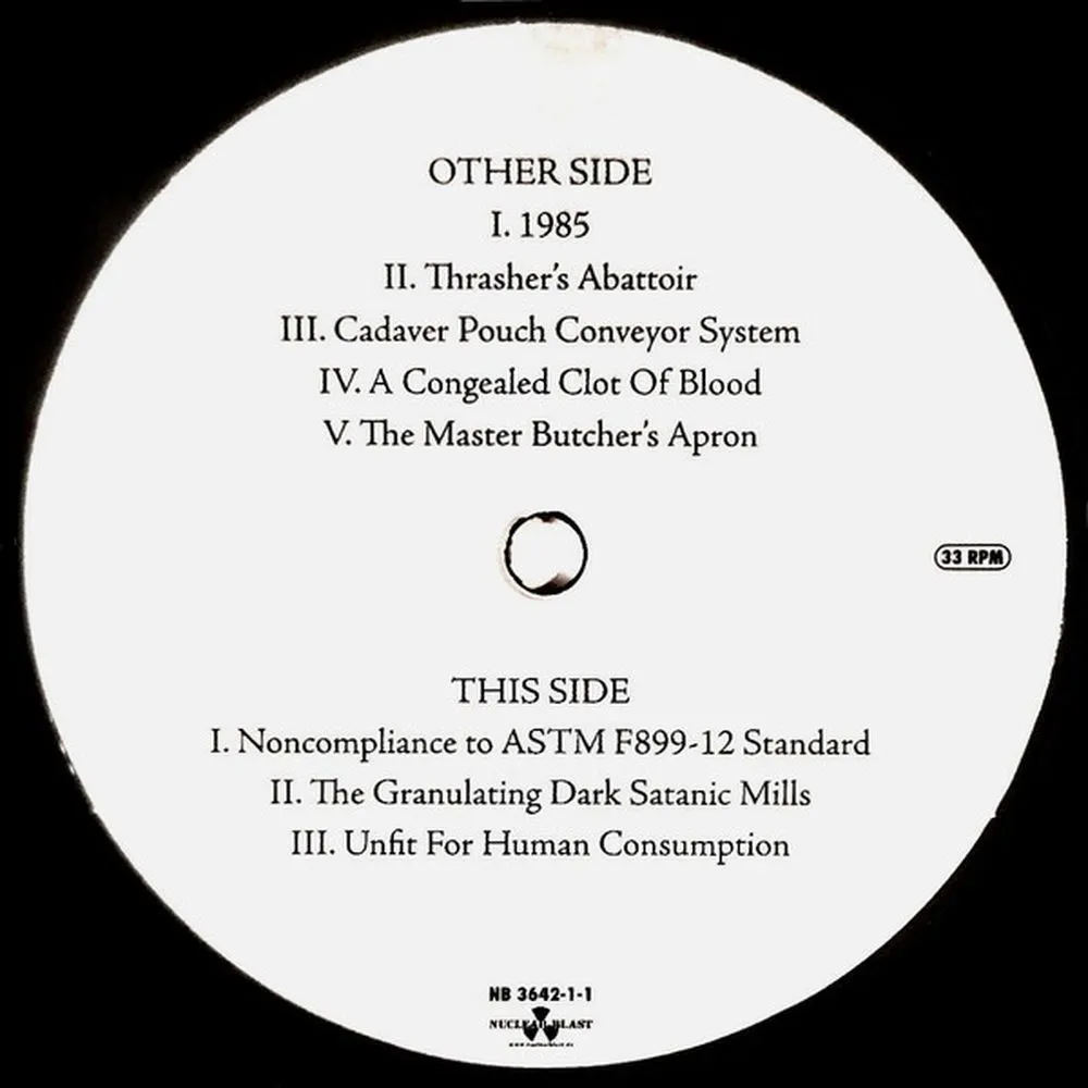 Лицензионное издание, выпущенное на виниле. В альбом вошли следующие композиции: 1985, Thrasher's Abattoir, Cadaver Pouch Conveyor System, A Congealed Clot Of Blood, The Master Butcher's Apron, Noncompliance To ASTM F899-12 Standard, The Granulating Dark Satanic Mills, Unfit For Human Consumption, 316L Grade Surgical Steel, Captive Bolt Pistol, Mount Of Execution, A Wraith In The Apparatus, Intensive Battery Brooding, Zochrot, Livestock Marketplace, 1985 (Reprise)