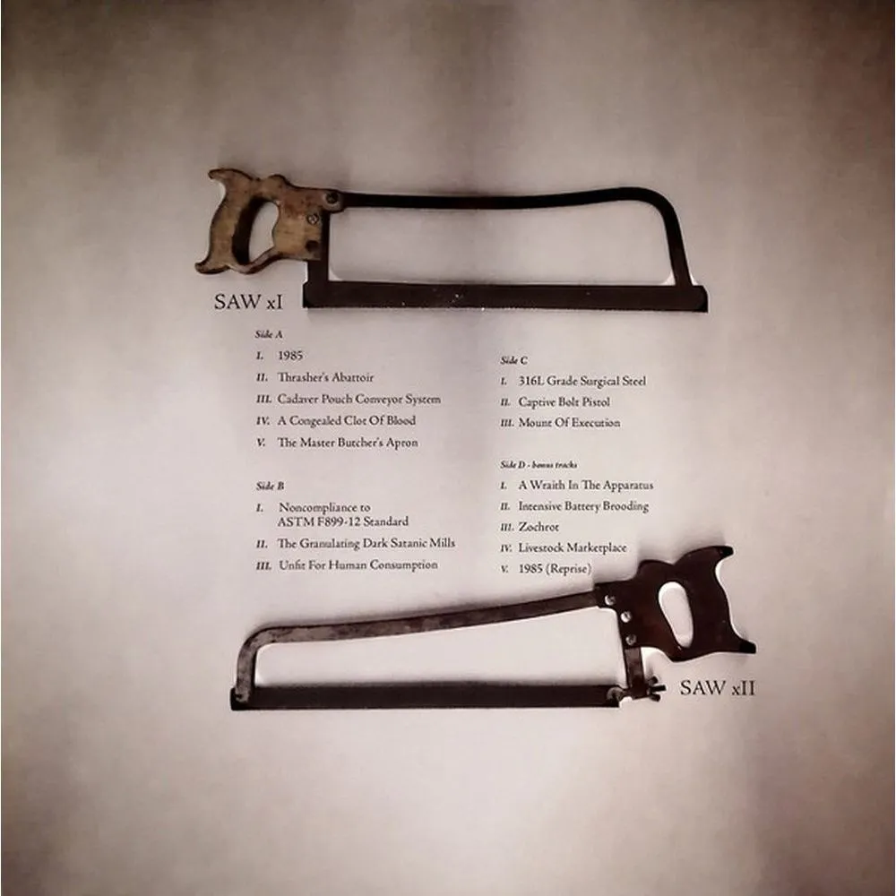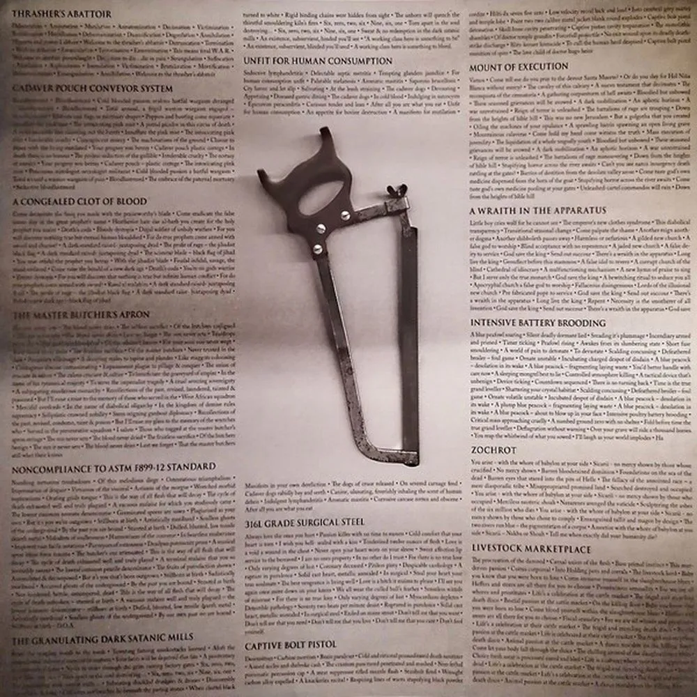 1985, Thrasher's Abattoir, Cadaver Pouch Conveyor System, A Congealed Clot Of Blood, The Master Butcher's Apron, Noncompliance To ASTM F899-12 Standard, The Granulating Dark Satanic Mills, Unfit For Human Consumption, 316L Grade Surgical Steel, Captive Bolt Pistol, Mount Of Execution, A Wraith In The Apparatus, Intensive Battery Brooding, Zochrot, Livestock Marketplace, 1985 (Reprise)