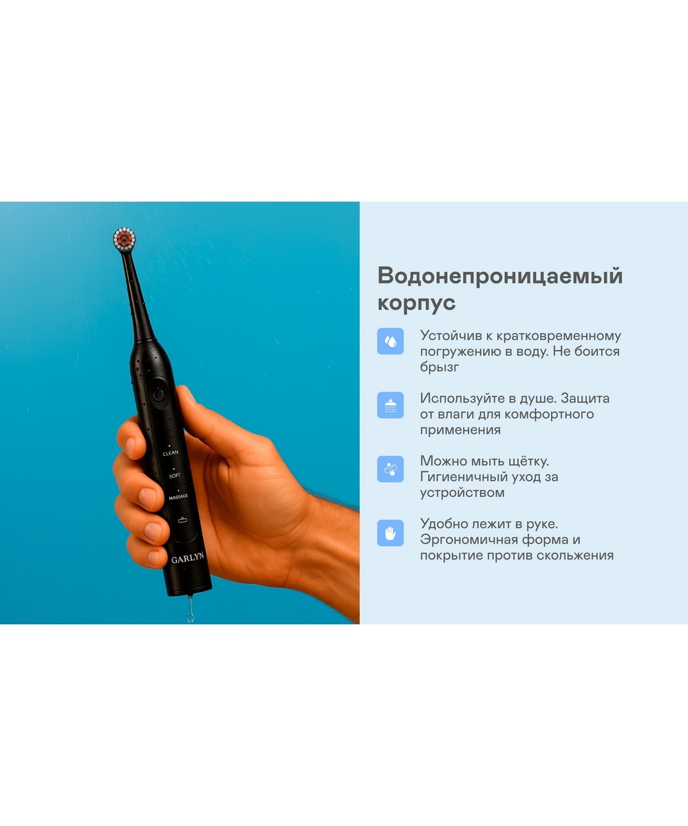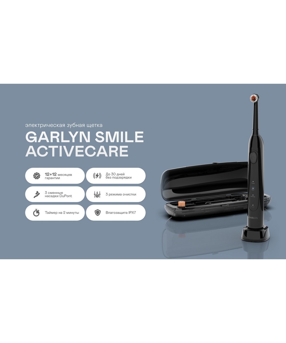 Описание товара Щетка зубная электрическая GARLYN Smile Activecare black