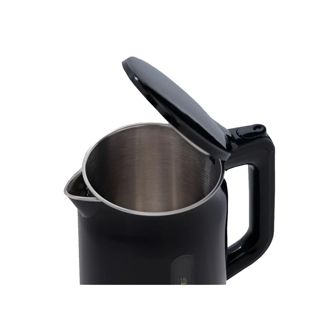 Двойные стенки корпуса чайника помогают сохранить тепло и обеспечить безопасное прикосновение, встроенное окно позволит контролировать уровень воды.