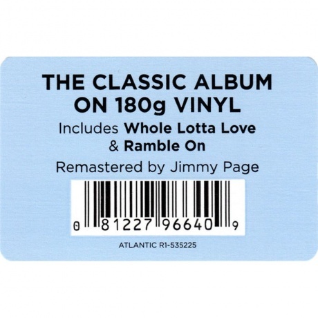 Отличное переиздание на 180 гр. виниле . Ремастеринг выполнен самим Джимми Пейджем . В альбом входят такие хиты , как Whole Lotta Love и Ramble On . Альбом разворотный , звук качественный .