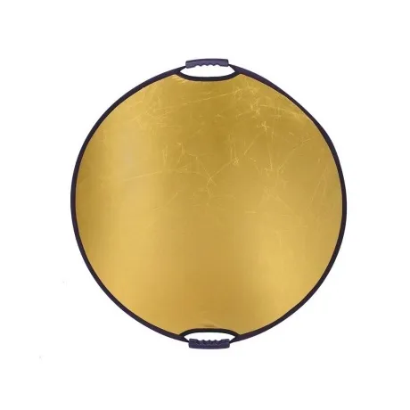 Односторонний круглый отражатель, цвет – золотистый. Диаметр 82 см, используется в предметной, портретной и других видах съемок для подсветки теней или создании светового акцента. Золотистая поверхность придает отраженному свету золотистые тона, добавляет теплого света в сцену. Стальной упругий каркас прошит по периметру капроновым карманом, диаметр отражателя в сложенном виде – 30 см. Две рукоятки, закрепленные на каркасе, оборудованы отверстиями с резьбой 1/4, что позволяет закрепить отражатель на штативах, стойках или любых других опорах, без использования специального держателя.