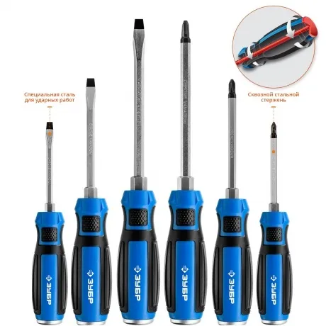 Профессиональные ударные отвертки ЗУБР для проведения монтажа и демонтажа под воздействием значительных нагрузок. Хромованадиевая сталь сквозного стержня обеспечивает высокую механическую прочность и долговечность.