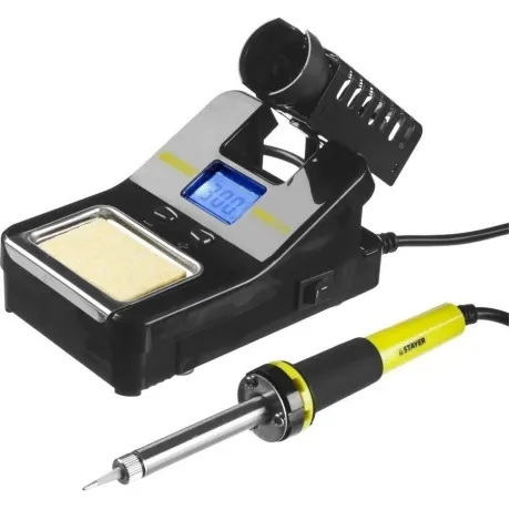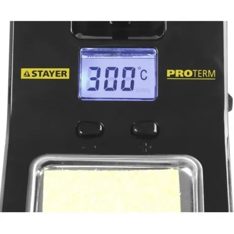 Паяльное оборудование STAYER изготовлено из высококачественных современных материалов. Антистатическая защита обеспечивает сохранность высокочувствительных радиоэлементов, значительно повышает безопасность работ и продлевает срок службы оборудования. Точная регулировка температуры нагрева жала (с шагом 10°С). ЖК-дисплей. Высококачественный нагревательный элемент для быстрого достижения необходимой температуры жала. Медное сменное жало со специальным покрытием обеспечивает длительный срок службы. Антистатическая защита. Легкая и эргономичная двухкомпонентная рукоятка. Удобная подставка для паяльника в комплекте. Коврик для чистки жала. Кнопка включения/выключения питания.