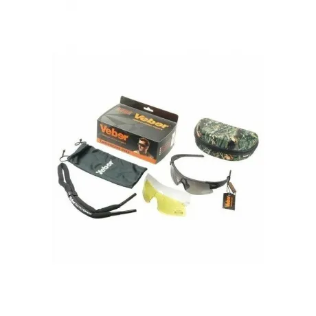 Очки тактические Veber Tactic Force L3P3, Бесцветные линзы, Серые линзы (установлены в оправу), Желтые линзы, Кейс, Мягкий чехол, Эластичный шейный ремень, Руководство по эксплуатации, Гарантийный талон
