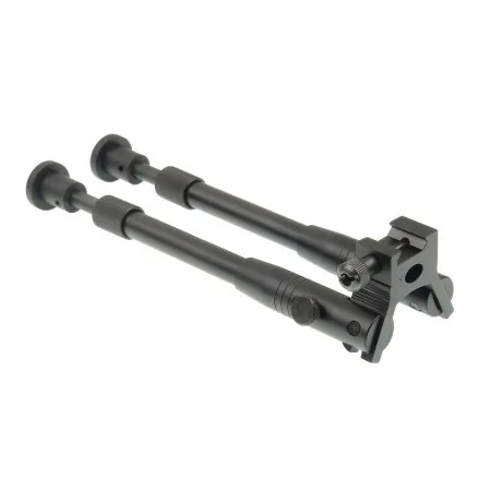 Складные сошки, устанавливающиеся на планку weaver и обеспечивающие устойчивую опору для оружия. Повышают точность выстрела, помогают достичь стабильных результатов при стрельбе лежа или сидя. Сошки изготовлены из алюминиевого сплава, стойкого к внешним воздействиям. Легкая (250 г), моментально складывающаяся конструкция (длина в сложенном виде 20, 5 см) практически незаметна в рюкзаке. Она успешно гасит удары и вибрацию благодаря пружинным амортизаторам, которые находятся внутри полых ножек. Длину ножек (и соответственно угол наклона оружия) можно быстро регулировать с помощью фиксаторов. Максимальная длина опоры – 24, 5 см, в собранном виде – 20, 5 см. Ребристые резиновые наконечники на ножках дают возможность сохранить положение сошек на различных поверхностях при любой погоде.