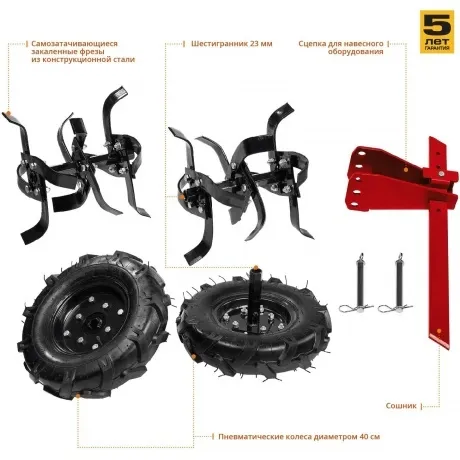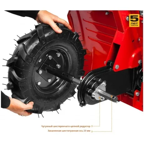 Бензиновый мотоблок ЗУБР мастер МТБ-300 предназначен для рыхления и культивации почвы на приусадебном участке. Ширина обработки 85 см и глубина до 35 см, а также несколько скоростей вперед и 1 назад делают модель превосходным выбором для участков площадью более 15 соток. Кронштейн для крепления навесного оборудования (диаметр 30 мм) и шкив отбора мощности позволяют использовать широкую гамму навесного оборудования. Большие пневматические колеса обеспечивают отличную проходимость. Мощный 4-х тактный двигатель - для высокой производительности, Чугунный шестеренчато-цепной редуктор с закаленной шестигранной осью 23 мм, Наличие заднего хода, Большие транспортные колеса, Самозатачивающиеся закаленные фрезы из конструкционной стали, Универсальная сцепка, Фрезы имеют разборную конструкцию, Надежный зубчатый клиновой ремень обладает повышенной износостойкостью по сравнению с обычными ремнями, Усиленный шнур стартера длиной 1.5 м, Сошник для регулировки глубины вспашки, 2 скорости вперед (основная и повышающая) и 1 назад позволяют комфортно работать на любых типах почвы, Рукоять мотоблока с возможностью регулировки по вертикали делает управление более комфортным, Конструкция мотоблока позволяет использовать его с различным навесным оборудованием: сцепка, окучник, плуг, картофелевыкапыватель, двухрядный окучник, грунтозацепы, щетка, косилка, снегоуборщик, прицеп, отвал, пахотный модуль, насос.