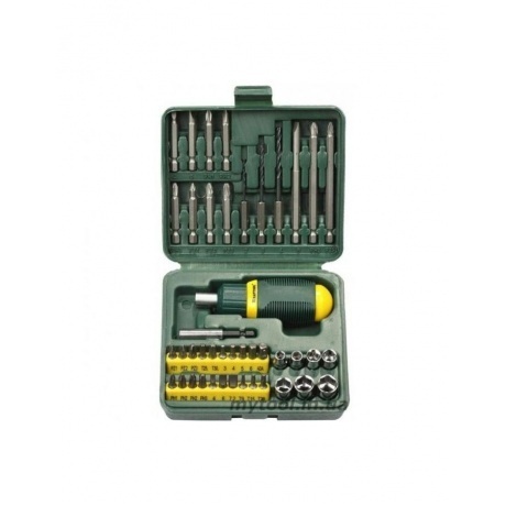 Набор бит KRAFTOOL 25556-H43 предназначается для того, чтобы закручивать и откручивать шурупы, винты или саморезы. Все изделия изготавливаются из хромованадиевой стали высокого качества. Переключать реверс возможно в три положения: фиксированное, откручивание, закручивание. Дополнительным преимуществом является наличие эргономичной прорезиненной противоскользящей рукоятки. Комплект имеет отдельный контейнер для бит. В KRAFTOOL 25556-H43 все инструменты помещены в удобный пластиковый кейс. Благодаря этому упрощается транспортировка комплекта, а также хранение изделий. В наборе представлены 19 бит на 25 мм, 8 бит на 50 мм, 3 биты на 100 мм, 7 торцевых головок, 3 сверла, реверсивная рукоятка, удлинитель для бит магнитного типа, адаптер для головок.