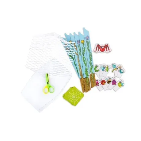 Достаньте из коробки паутинки и цветы-опоры, натяните паутинку и разместите на ней паучка и 10 букашек. По очереди делайте разрезы ножницами, чтобы освободить всех жучков. Осторожно, сам паучок должен оставаться на паутинке! Как только все букашки свободны — вы все вместе выигрываете!