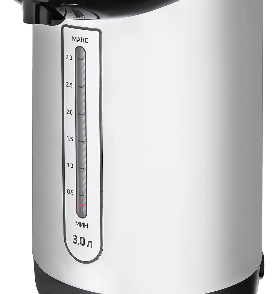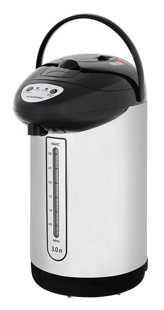 Корпус STARWIND STP1130 выполнен из нержавеющей стали в классическом сочетании черного и серого цвета. Он отлично впишется в атмосферу любого помещения. Достоинством данной модели является резервуар для воды, также изготовленный из нержавеющей стали. Термопот оборудован нагревательным элементом мощностью 750 ватт и насосом комбинированного типа. Время нагревания воды, в полностью заполненном резервуаре, составляет тридцать минут. Вы мгновенно можете получить горячую воду, благодаря наличию функции поддержки температуры или, при необходимости, повторно закипятить ее. Благодаря поворотной основе включить устройство и посмотреть количество воды в резервуаре можно с любого места. Крышка данной модели, а также электрический кабель, легко отсоединяются. Такая конструкция обеспечивает удобное очищение внутренней емкости. STARWIND STP1130 имеет удобную ручку для переноски, которая находится на крышке.