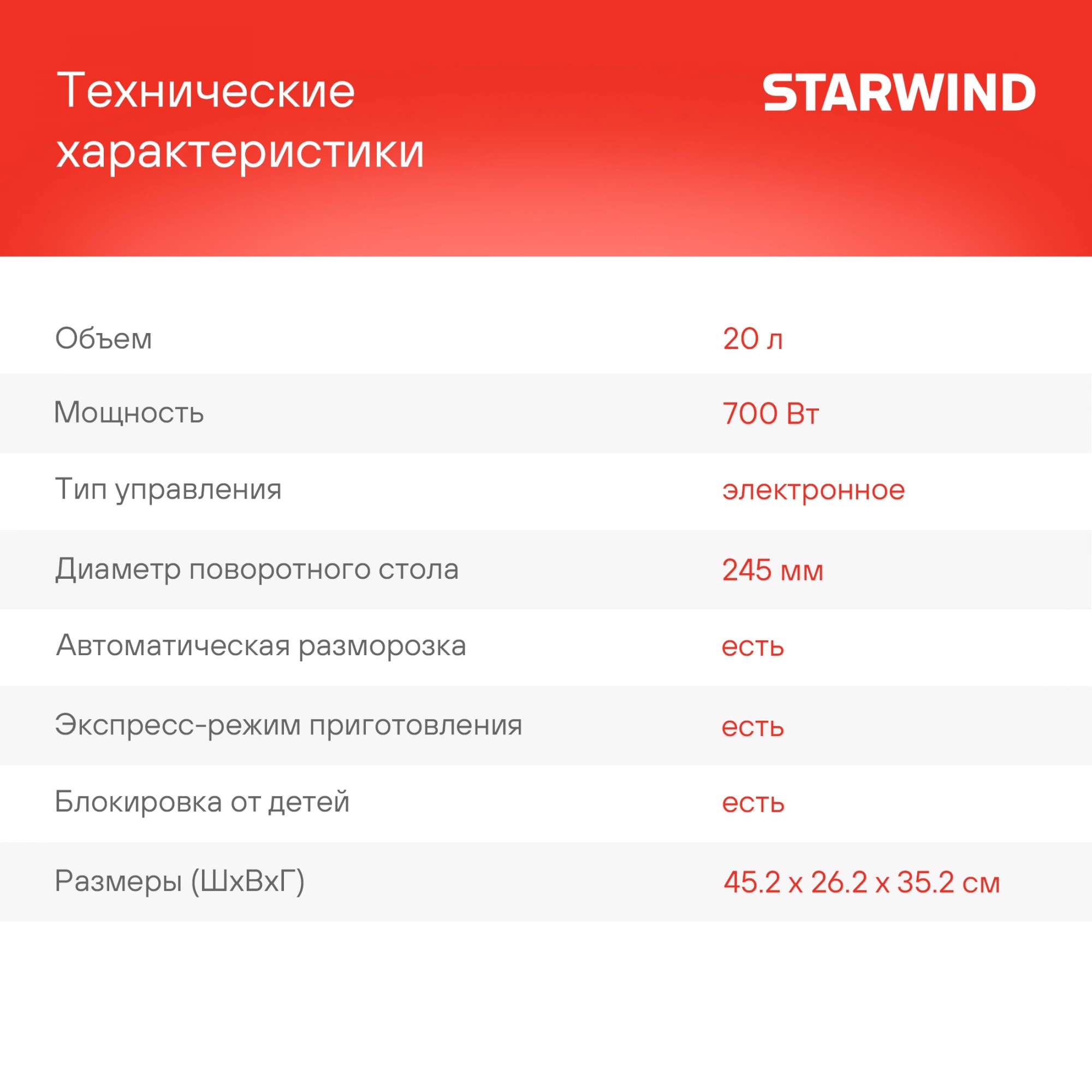 Описание товара Микроволновая печь Starwind SMW5320