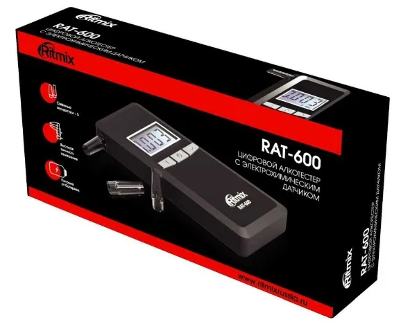 Описание товара Алкотестер Ritmix RAT-650 электрохимический черный