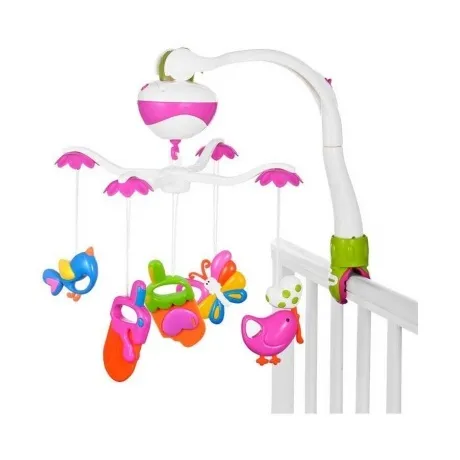 Мобиль это одна из первых игрушек для новорождённых и уникальный тренажер для развития визуального восприятия и слуховых ощущений. Забавные зверюшки, прикрепленные к мобилю, поворачиваются по кругу, как карусели. Пытаясь следить за ними глазами, малыш учится фокусировать взгляд на объекте. Игрушки можно снимать и давать играть с ними ребенку отдельно. Изделие работает в двух режимах: кручение с музыкой и кручение без музыки. Игрушка работает от 3-х батареек типа АА 1, 5 V (в комплект не входят).