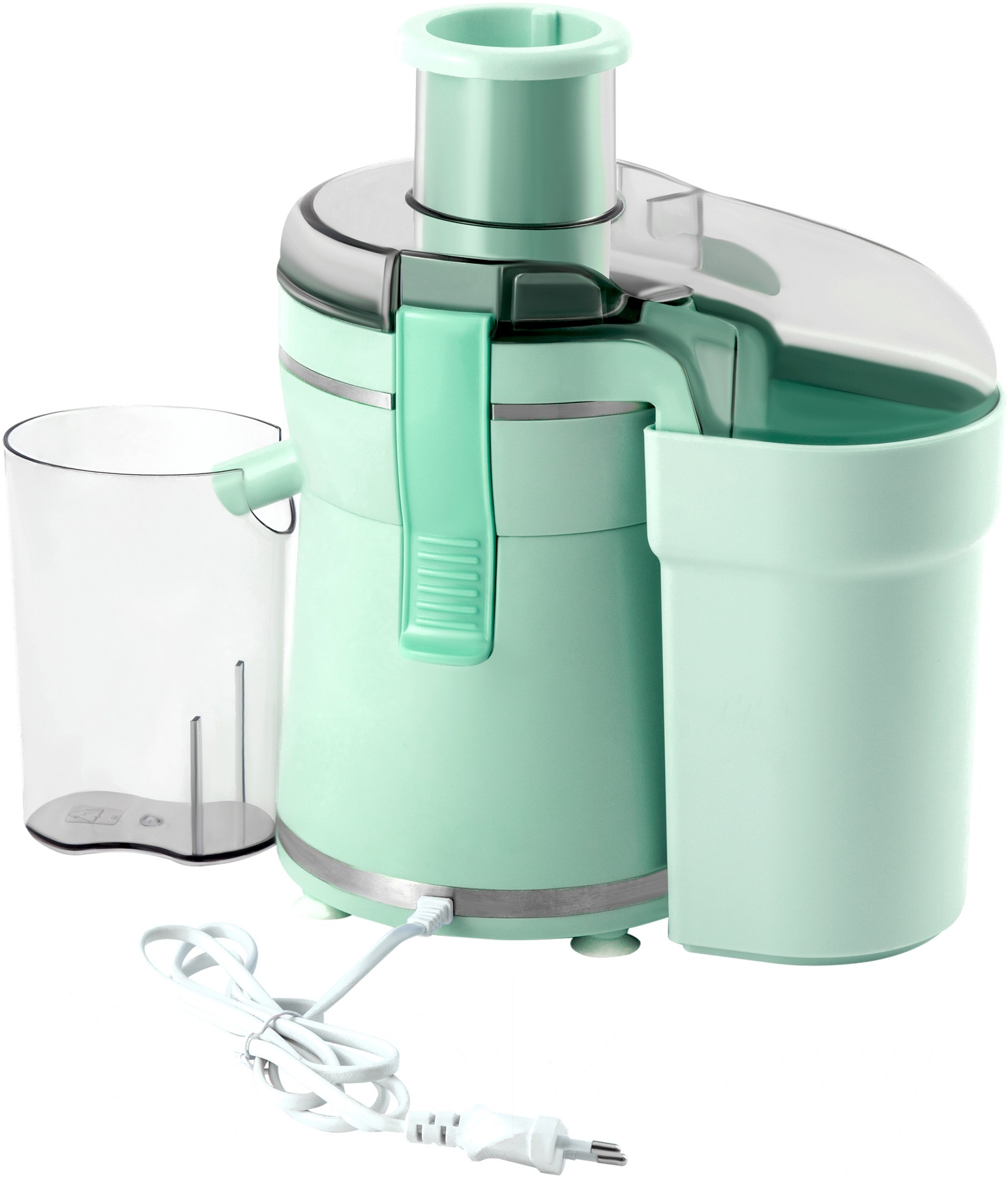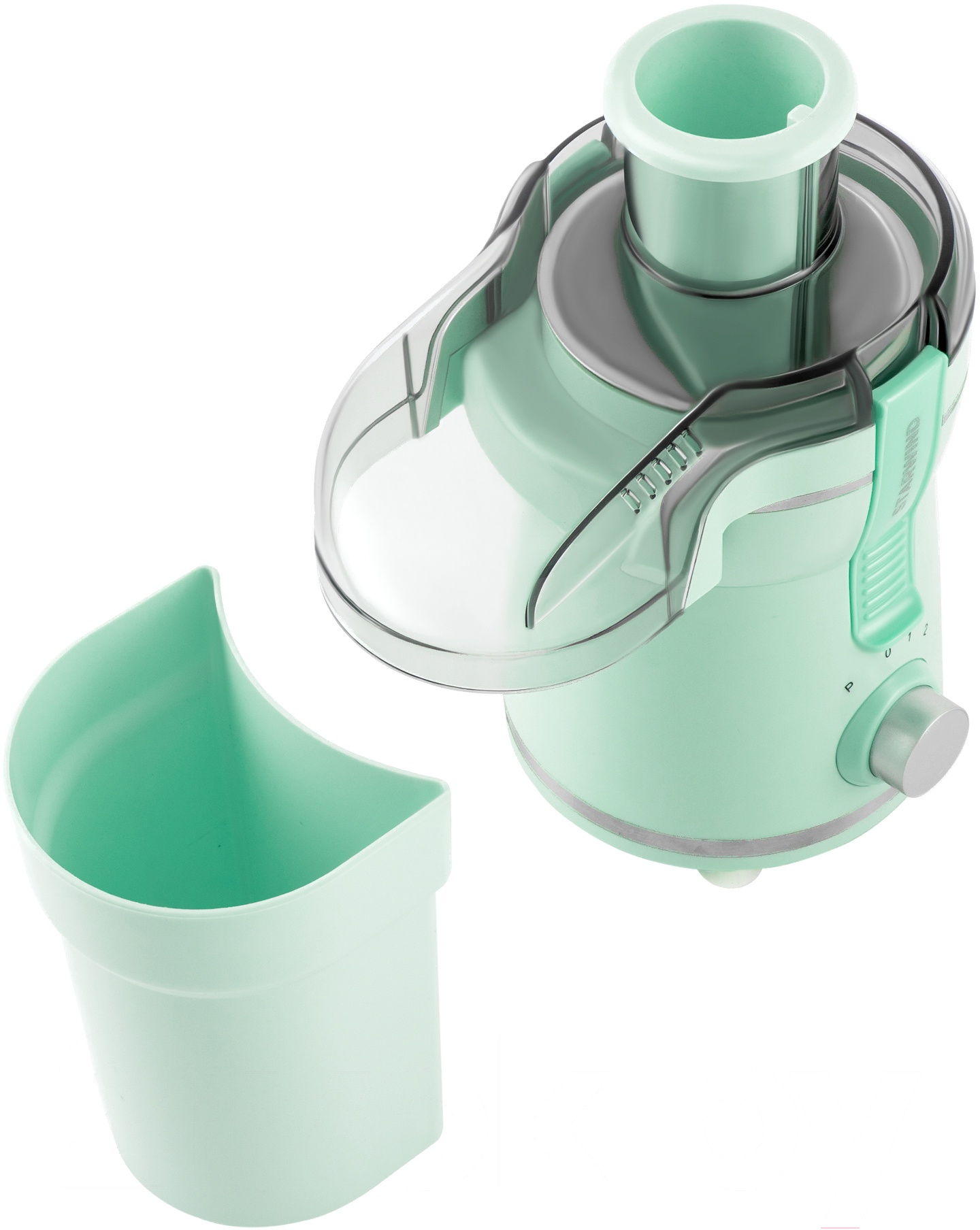 Мощность прибора достигает 750 Ватт, её вполне хватает, чтобы добывать сок даже из самых плотных овощей и фруктов. Для удобной подачи плодов в нём предусмотрена специальная кругла горловина, а центробежная основа позволяет получать чистый и незамутненный сок с необходимым количеством мякоти. И для неё, и для готового сока в устройстве предусмотрено два резервуара, под мякоть объёмом 1200 мл, под сок – 400 мл.
