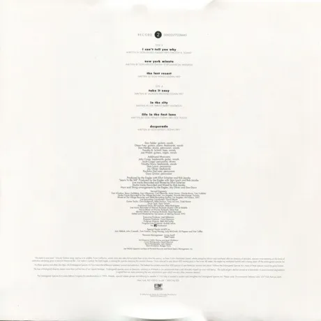 Лицензионное издание, выпущенное на виниле. В альбом вошли следующие композиции: Get Over It, Love Will Keep Us Alive, The Girl From Yesterday, Learn To Be Still, Tequila Sunrise, Hotel California, Wasted Time, Pretty Maids All In A Row, I Can't Tell You Why, New York Minute, The Last Resort, Take It Easy, In The City, Life In The Fast Lane, Desperado