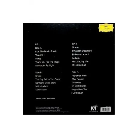 I Let The Music Speak, You And I, Aldrig, Thank You For The Music, Stockholm By Night, Chess, The Day Before You Came, Someone Else’s Story, Midnattsdans, M?larskolan, I Wonder (Departure), Embassy Lament, Anthem, My Love, My Life, Mountain Duet, Flickornas Rum, Efter Regnet, Tr?stevisa, En Skrift I Sn?n, Happy New Year, I Gott Bevar