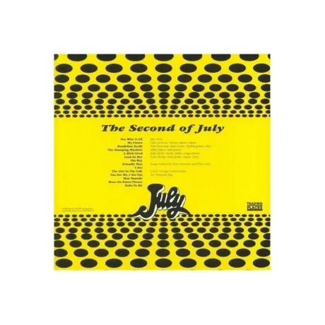 "The Second Of July" - альбом 1995 года группы July. Он был записан музыкантами Томом Ньюманом и Питером Куком в 1968 году, но по ряду причин был выпущен позднее, в 1995 году. Он представляет собой сборник демо-записей, записанных в Лондоне в начале 1968 года до выхода дебютного альбома July "July". Релиз содержит ранее не издававшиеся альтернативные версии и отрывки песен. Переиздание на 180-гр чёрном виниле. July - психоделик-рок группа из Илинга, Лондон, активная с 1968 по 1969 годы. Музыка группы представляла собой смесь психоделических рок- и поп-музыки, дополненную пышными гармониями, акустическими гитарами, клавишными и сложными партиями соло-гитары. Хотя ни одна из пластинок группы не попала в чарты Великобритании или США, группа известна своими песнями "My Clown", "Dandelion Seeds" и "The Way", которые регулярно попадают на различные компиляции.