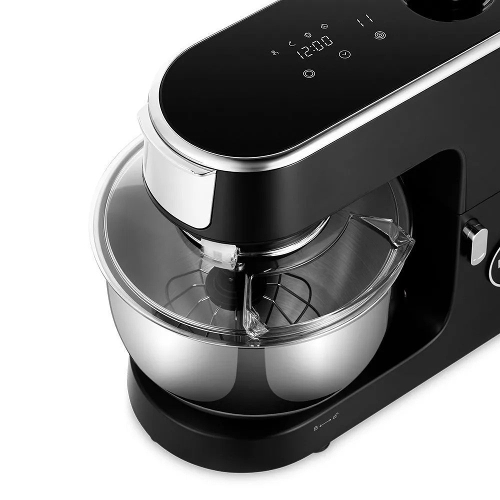 Планетарный миксер КТ-3436 поможет вам смешать ингредиенты для любого блюда, взбить яичный белок или сливки, приготовить картофельное пюре, мусс, крем, соус, замесить жидкое тесто для блинов или крутое тесто для пельменей и пирогов. Во время работы прибора скорость вращения регулируется. Кнопкой скорость также можно настроить скорость работы, она отобразится на индикаторе. У прибора 11 скоростей и 4 режима работы: ручной режим, замешивание, взбивание, смешивание. В комплекте идут венчик для взбивания, крюк для замеса крутого теста, насадка для смешивания продуктов и приготовления пюре. Форма насадок и чаши подобраны так, что почти при любом количестве продуктов насадка перемешает их качественно и быстро. Кнопка «Время» позволяет настроить время работы миксера. Для каждого режима можно настроить время от 1 минуты до 99 минут 59 секунд с шагом 1 минута. При нажатии на кнопку «Время» таймер на панели управления начинает мигать. Планетарный миксер КТ-3436 укомплектован защитной крышкой с загрузочным отверстием, через которое можно добавлять ингредиенты прямо во время работы, не отвлекаясь на выключение прибора. Благодаря крышке ваша кухня останется чистой и аккуратной. Чаша миксера выполнена из нержавеющей стали и имеет ёмкость 5,5 литров, в ней можно смешивать даже горячее. В комплекте идут насадки для взбивания, смешивания и замеса крутого теста, а также защитный кожух, который защищает шпиндель от налипания.