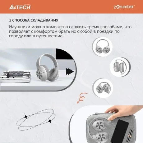 Описание товара Наушники A4Tech 2Drumtek BH300 White-Grey