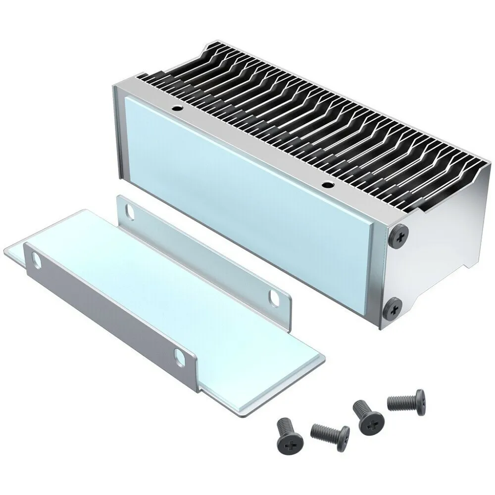 Алюминиевый радиатор для SSD M.2 ID-Cooling ZERO M15 с отшлифованной зеркальной поверхностью предназначен для создания пассивного охлаждения. Две части термопластичных прокладок плотно удерживают охлаждение для эффективной передачи тепла. Подсветки в конструкции не предусмотрено. Ядра радиатора выполнены из меди. В комплект поставки радиатора для SSD M.2 ID-Cooling ZERO M15 входят 4 винта для надежной установки. Размеры устройства составляют 7.4x2.25x3 см, что необходимо учесть при установке.
