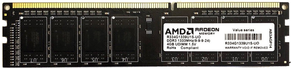 Модуль памяти AMD Radeon DDR3 1333 DIMM R3 Value Series Black R334G1339U1S-UO — это устройство, предназначенное для улучшения производительности компьютера. Оно используется для временного хранения данных и обмена ими между процессором и жёстким диском.