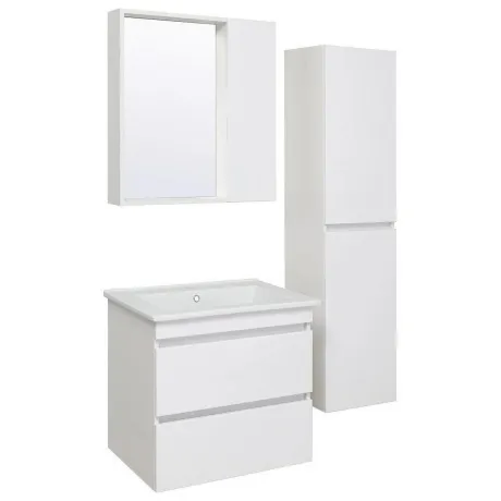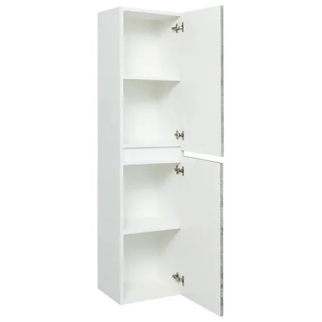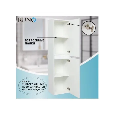 Шкаф-колонна подвесной с двумя отделениями и распашными дверками. В каждом отделении по одной встроенной полке. Петли со встроенным доводчиком, подвес -2шт. Шкаф универсальный (для смены ориентации товар поворачивается на 180 градусов). Корпус изделий изготовлен из белого ЛДСП, а фасады облицованы белой пленкой ПВХ.