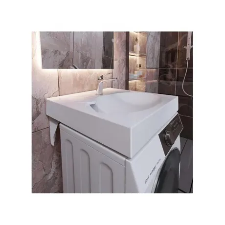 Подвесная раковина Paola на 2 кронштейнах предназначена для установки над стиральной машиной. Компактная, эргономичная, позволяет экономить площадь ванной комнаты. Раковина выполнена из прочного износостойкого литьевого мрамора, сверху покрыта специальным защитным покрытием гелькоутом. Изделие обладает глянцевым блеском, очень приятное на ощупь, прочное. Даже при минимальном уходе долго сохраняет безупречный цвет и внешний вид.